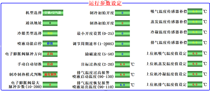 11)、顯示界面上29 路參數(shù)控制參數(shù)設(shè)置/查詢:控制器內(nèi)所有與控制相關(guān)的溫度參數(shù)、時間參數(shù)、控制參數(shù)、等29個參數(shù)都可以調(diào)整,以適應(yīng)制冷/熱泵/冷庫/水機等設(shè)備。