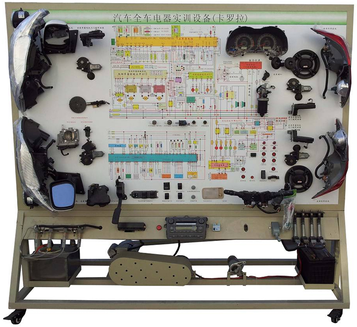汽車(chē)電氣設(shè)備實(shí)訓(xùn)室。汽車(chē)電器設(shè)備實(shí)訓(xùn)室包含有汽車(chē)燈光系統(tǒng)、車(chē)載網(wǎng)絡(luò)系統(tǒng)、全車(chē)電器系統(tǒng)、汽車(chē)啟動(dòng)系統(tǒng)、汽車(chē)空調(diào)系統(tǒng)、全車(chē)線路試驗(yàn)臺(tái)、等實(shí)訓(xùn)教學(xué)設(shè)備。該實(shí)訓(xùn)室可以承擔(dān)《汽車(chē)構(gòu)造》、《汽車(chē)電器設(shè)備》、《汽車(chē)電控系統(tǒng)》、《汽車(chē)檢測(cè)與診斷》等課程的實(shí)踐教學(xué)任務(wù)?梢杂糜谘芯、分析全車(chē)電器系統(tǒng)、燈光系統(tǒng)、儀表系統(tǒng)等電器設(shè)備的電路及功能。利用這些系統(tǒng)進(jìn)行實(shí)踐教學(xué),使學(xué)生熟悉汽車(chē)電器的結(jié)構(gòu)和工作原理,掌握各個(gè)系統(tǒng)的基本組成電路,掌握主要電路的檢測(cè)方法和系統(tǒng)的故障特征,從而具有一定的檢測(cè)和調(diào)校能力。