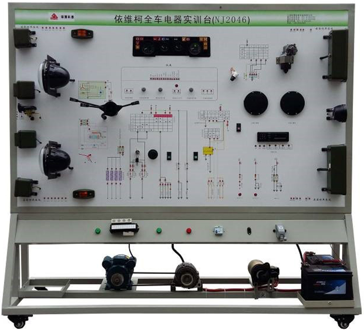 2.設(shè)備面板采用耐創(chuàng)擊、耐污染、防火、防潮的高級鋁塑板,表面經(jīng)特殊工藝噴涂底漆處理;面板打印有永不褪色的彩色電路圖;學(xué)員可直觀對照電路圖和實(shí)物,認(rèn)識和分析汽車整車電器各系統(tǒng)的工作原理。