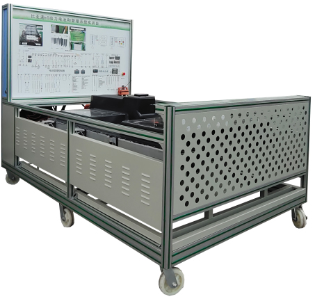 (比亞迪e5 EV300純電動(dòng)汽車) 鋰動(dòng)力電池組、電池管理系統(tǒng)BMS、BMS顯示屏(7寸觸摸屏)、維修開關(guān)、輔助蓄電池(12V45AH)、高壓配電箱、漏電傳感器、車載充電機(jī)、國標(biāo)充電插座與充電槍、直流接觸器(包含充電繼電器、總正繼電器、總負(fù)繼電器、預(yù)充繼電器)、急停開關(guān)與電源總開關(guān)、一體化全鋁合金型材搭建的移動(dòng)臺(tái)架(1500×700×1700mm ,帶自鎖腳輪裝置,帶安裝檢測(cè)端子的原理面板1448×940mm)、故障考核系統(tǒng)、設(shè)備操作說明書。