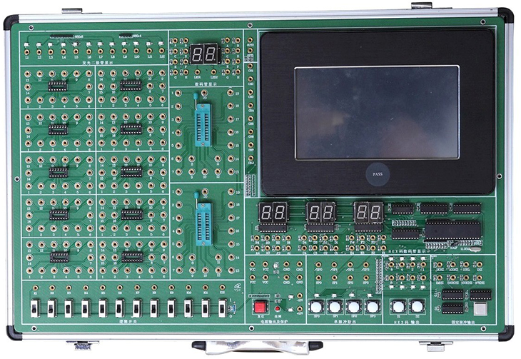 數(shù)字邏輯測試實驗箱由鋁木合金箱體、開關電源、常用信號源、實驗電路區(qū)和邏輯示波器等組成。其中常用信號源由高性能單片機89C51產生,信號穩(wěn)定可靠。全部的實驗用信號線的連接采用自鎖緊鍍金插頭座,接觸可靠。配置8路邏輯示波器自帶嵌入式CPU SMT32和7.5寸液晶屏,有效地提高設備的綜合利用率。數(shù)字邏輯測試實驗箱適用于本?、高職高專院校所有電類和非電類專業(yè)《數(shù)字電子技術》課程的實驗、實訓和自行設計。