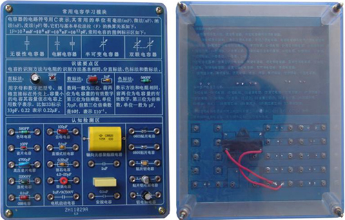底盒使用190mm×145mm的開模有機透明塑料底盒,模塊面板采用印制電路板PCB工藝,可以直觀看到器件的實物及相關(guān)的原理介紹。對于典型應(yīng)用及易損器件安裝在面板背面,透過透明底盒能夠看到器件實物,方便感性認(rèn)識、檢測測試,同時也能防止器件的損傷。