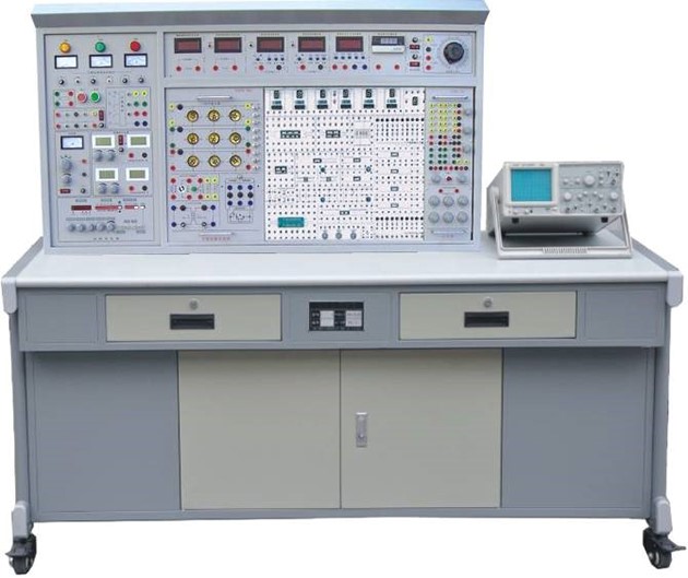 提供四位十進(jìn)制譯碼顯示器、8位邏輯電平開(kāi)關(guān)、8位電平指示器、三態(tài)邏輯筆、脈沖信號(hào)源(正、負(fù)輸出單次脈沖和頻率為0.5Hz~300KHz連續(xù)可調(diào)的計(jì)數(shù)脈沖源各一路),設(shè)有一些高可靠圓腳集成電路插座(9P、14P、16P、28P、40P若干只)。實(shí)訓(xùn)箱還配有單管/負(fù)反饋兩級(jí)放大器、射極跟隨器、RC串聯(lián)選頻網(wǎng)絡(luò)振蕩器、差動(dòng)放大器及低頻OTL功率放大器共五塊固定線(xiàn)路實(shí)訓(xùn)板?刹捎霉潭ň(xiàn)路或分立元件靈活組合進(jìn)行實(shí)訓(xùn)。